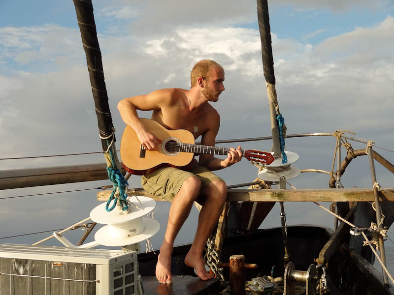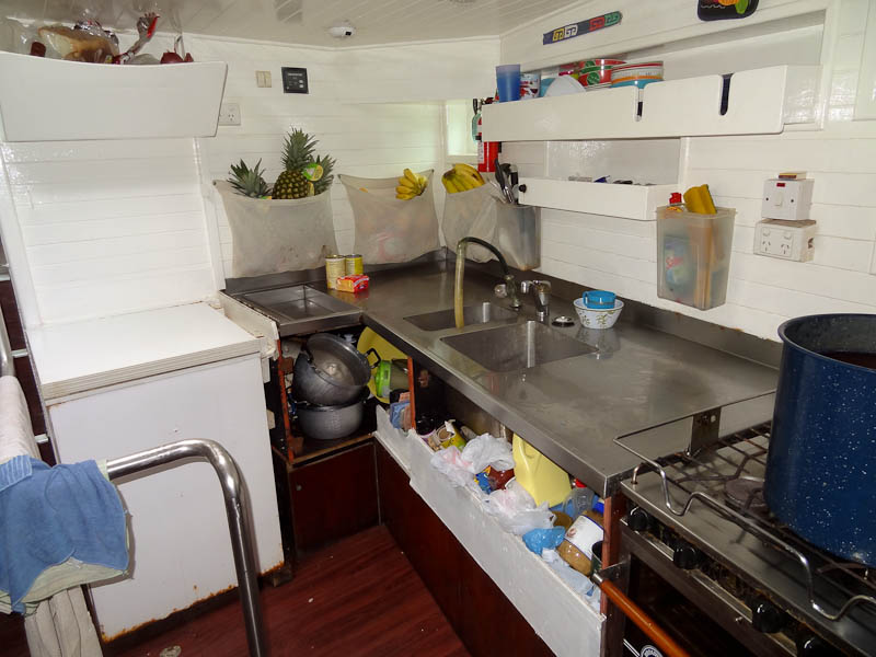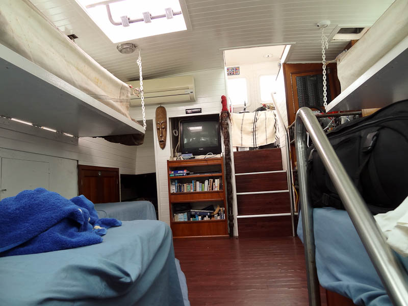 If I was in my bed, I would be fine. So I spent a lot of time there. Also, when I was on deck I was usually fine. There’s something about fresh air that helps with seasickness. My bed was in the kitchen, so when they cooked it would get really hot in there. If the overhead window was closed due to rain, it became oppressively hot and it didn’t sit well with me.