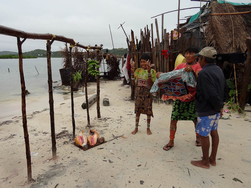 We entered a hut, sat down, and had a minute or two of interaction with the chief. A couple of interesting things were relayed about Kuna culture, and then the barrage women started coming in trying to sell their bracelets, shirts, and other items. It works both ways – we see them as a novelty and they see us as a means to an end as they too must survive in this capitalistic world. Sad.