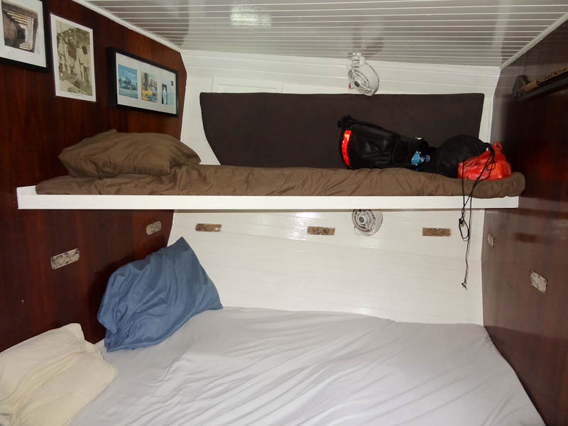 Compared to the accommodations I had on boats I stayed on in The Middle East and on the oil rigs I lived on there, this was much more uncomfortable. I couldn’t sit up straight in my bed, the bed was at an angle to prevent me from falling out (safe, but uncomfortable), there wasn’t hardly any storage space, all my stuff smells like sauteed onions since I stayed my bed was in the kitchen, etc. My back didn’t feel good during the trip, but now that I’m back on shore it feels fine. I think it was the bed. And I had a mild headache most of the time.