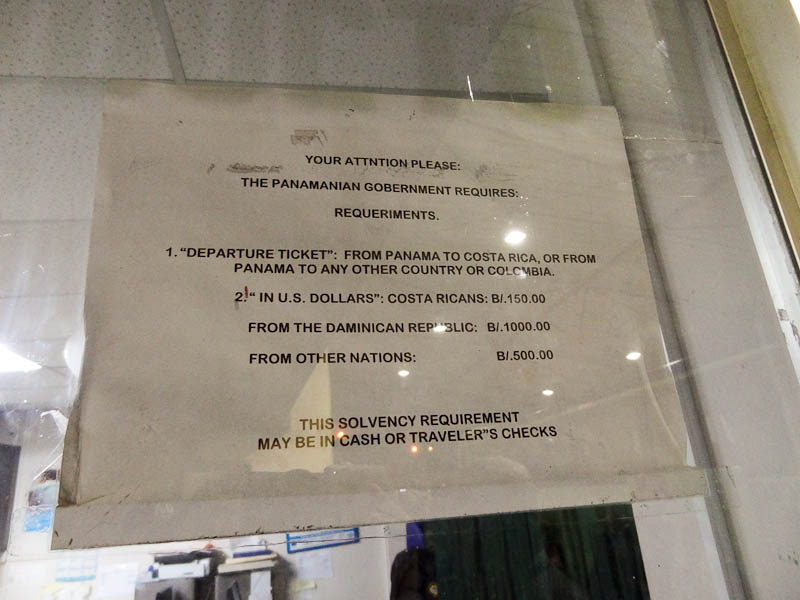 When I finally got to the immigration window, the guy asked for my ticket. I handed him my San Jose-David ticket. He spoke really quickly in Spanish, so I didn’t understand everything. But he pointed to a sign showing that all foreigners have to prove my exit from Panama.