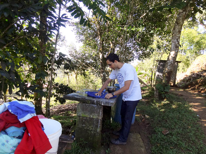 For the rest of my clothes, I use washing machines when they are available. But so far they haven’t been available frequently. So I have washed all my clothes by hand in the shower at times. In Latin America many houses have something called a pila. It’s basically a concrete sink attached to the outside of a house. You can wash clothes by hand using soap in the pila.