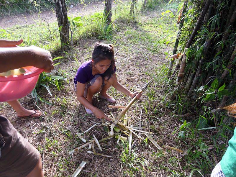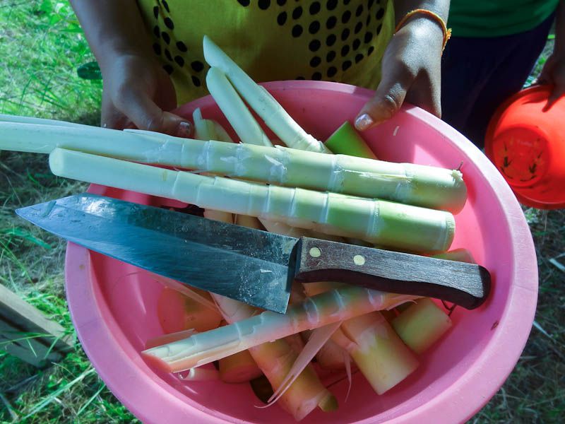 The bamboo was procured from the farm. You just find a mature shoot, break it off, take the bark off, and you have what you need for the soup.