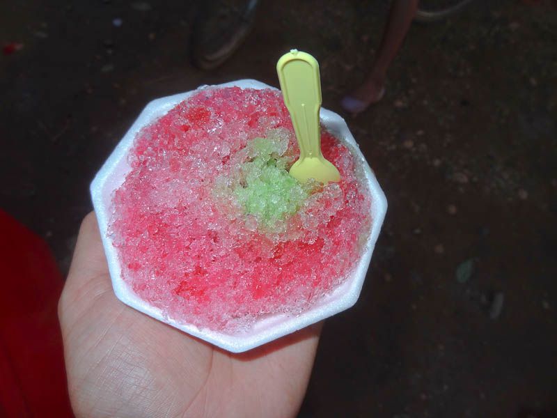 But the raspadilla here is version 2.0. Not only do they add flavored syrup, they add condensed milk for additional sweetness, little gummy bear type things for chewiness, and the ice itself is crushed in a small machine instead of shaved by hand like in Peru.