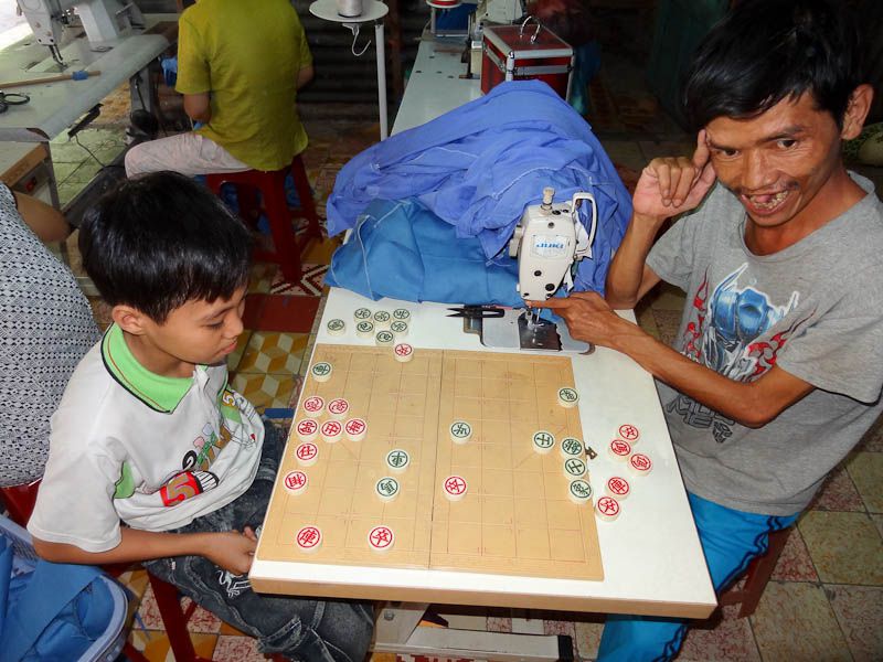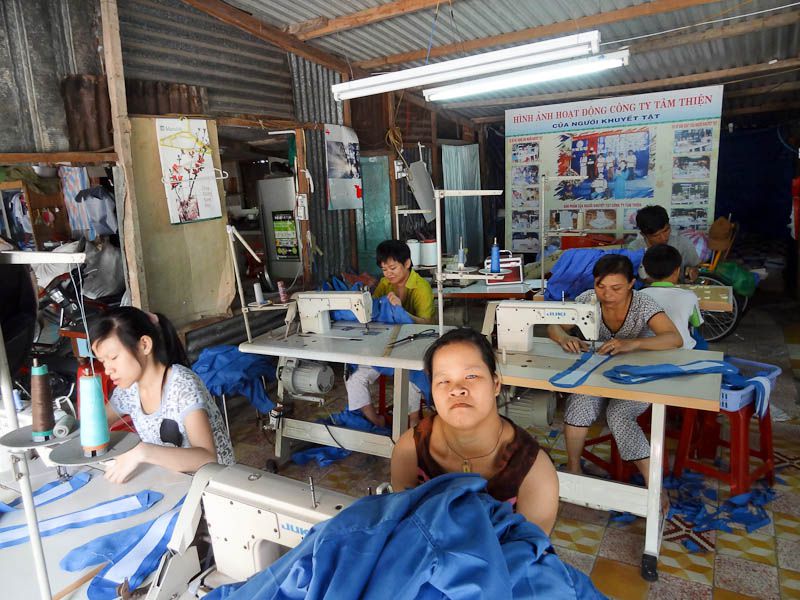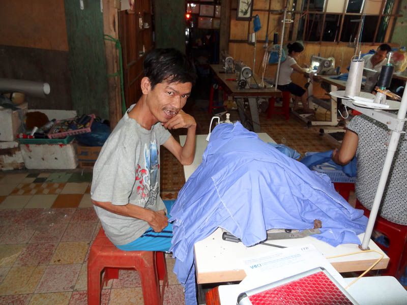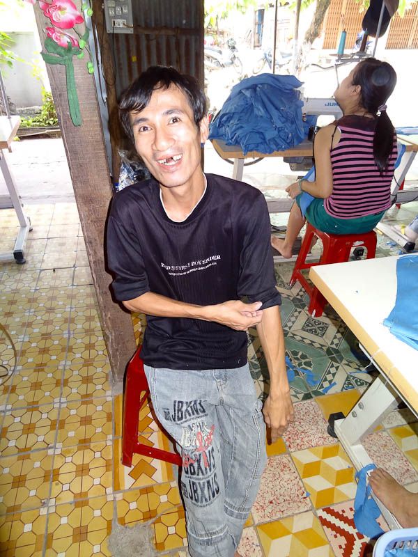 20 years later, she’s had 100 kids pass through this modest workshop, many of whom have gone back to their villages and have become the tailor/clothes repairman for the town. Dignity restored and self-sustaining income.. Mission Accomplished, Anh!