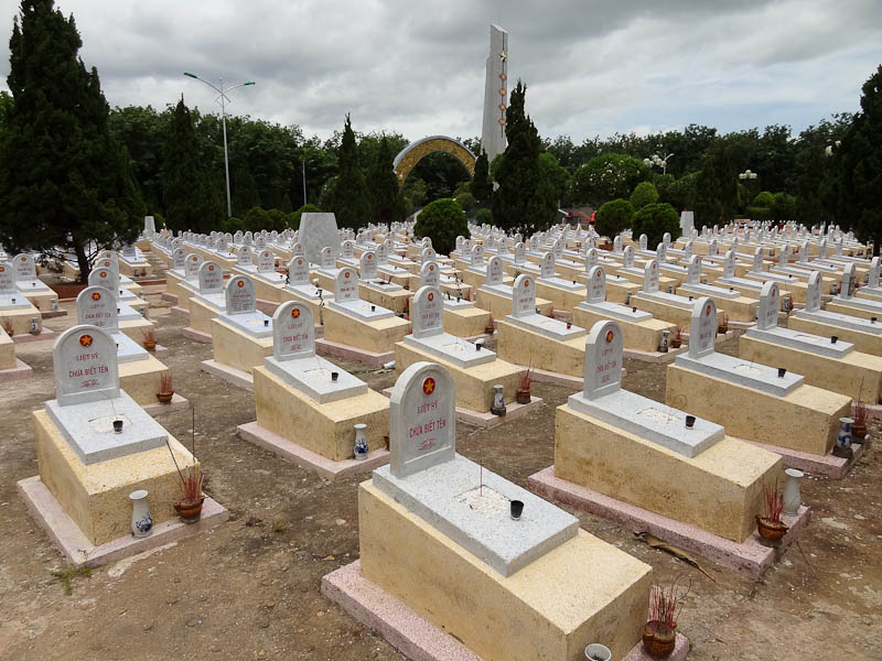 Very close to the DMZ is a huge Vietnamese cemetery and monument. Similarly sad, almost all of the graves were marked “unknown soldier.” There are also graves for body parts, where a whole body was not identifiable and only fragments were found.