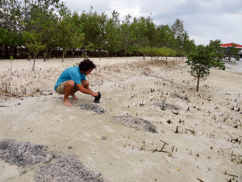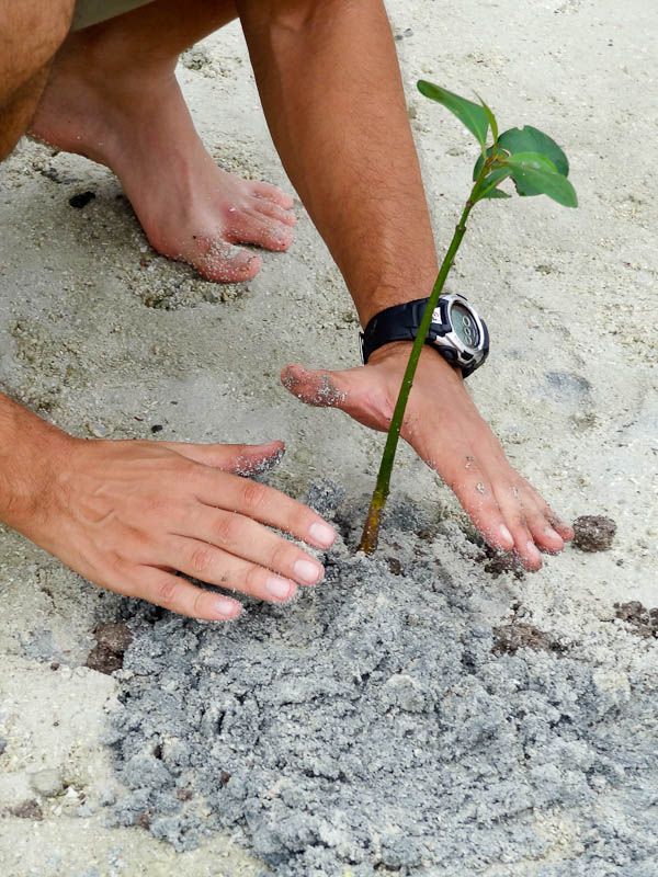 To do something positive, we planted some mangrove trees while I was there. They grow quickly and are instrumental to keep the local ecosystem vibrant. The mangroves shield the community from harsh winds in the windy part of the year, act as a natural filter against garbage washing up into their communities, and stimulate fish and crab breeding.