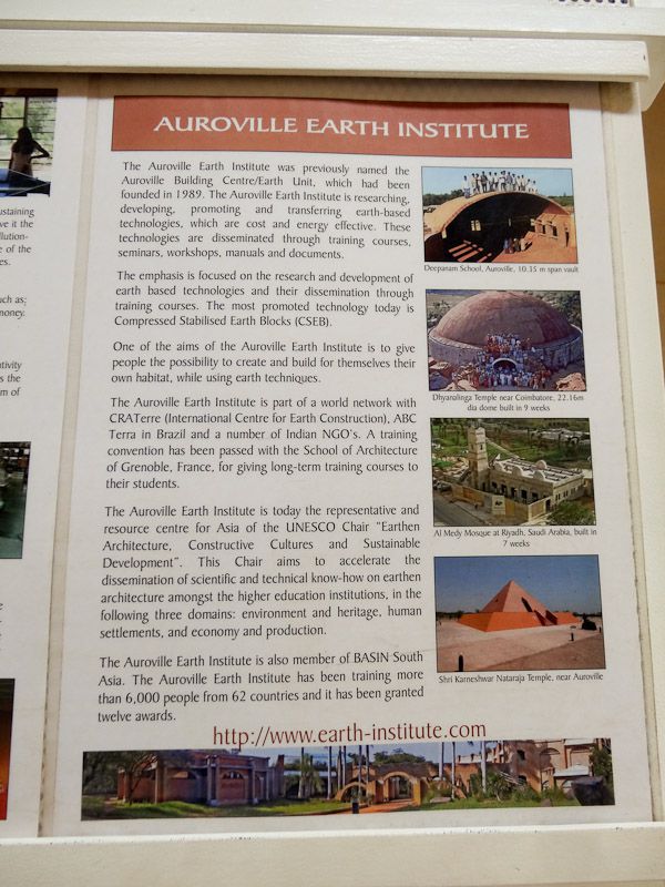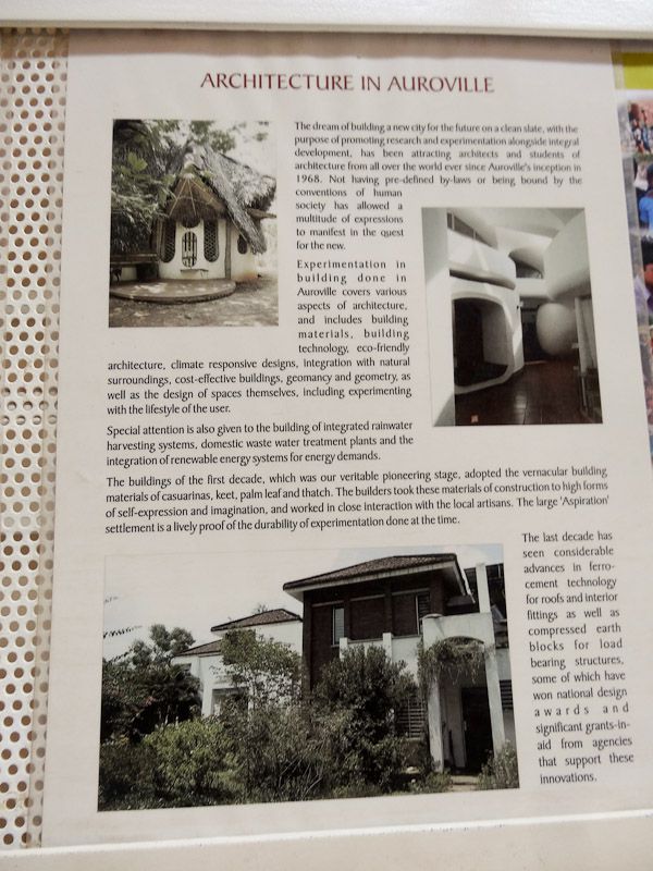 Auroville was intended to be a community of 50,000 but less than 3,000 live there today coming from 43 different countries. It’s an interesting place, with an interesting vision. Below some pictures and you can find more information here if interested.